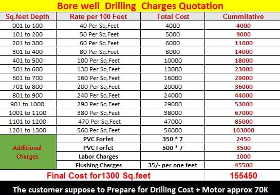 If the depth of the bore well is 300 ft, the building should be 100 ft away, but that may not be possible in crowded cities. Then it should be at least 25 to 30 ft away. What is the maximum depth of water hose in a bore well? Our bore well depth is 1000 ft. I dropped a water hose up to the level of 990 feet, and used a 5HP high pressure compressor to pump the water out.